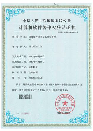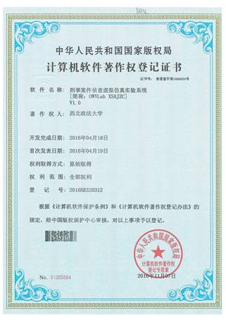 我院台治强教授以主持的2015年陕西省教改项目《刑事案件侦查虚拟仿真实验教学研究》为契机,带领团队在国内率先开发了具有原创性的刑事案件侦查虚拟仿真实验教学软件、现场勘查虚拟仿真实验教学软件和刑事案件侦查文书制作实验教学软件,同时编制完成了《开放式虚拟仿真实验教学管理平台用户手册》、《刑事案件侦查虚拟仿真实验用户手册》、和《刑事案件侦查文书制作用户手册》等使用说明和操作手册。刑事案件侦查虚拟仿真实验教学软件和刑事案件侦查文书制作实验教学软件均已申报取得了拥有全部权利的国家版权局软件著作权登记证,刑事案件侦查虚拟仿真实验教学软件获2016年全国高等学校虚拟仿真实验教学资源成果二等奖,是全国公安政法院校乃至文科综合组唯一获奖的项目。